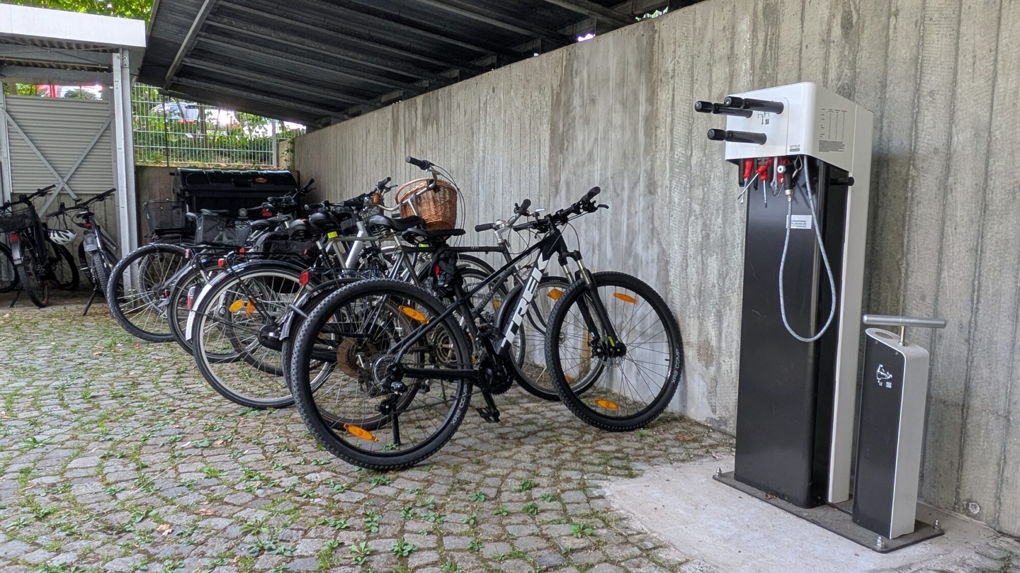 Bild (© Landratsamt Aichach-Friedberg, Ulrike Schmid): Die Fahrrad-Servicestation am Landratsamt ist eines von zahlreichen Angeboten im Rahmen des Betrieblichen Mobilitätsmanagements, das Mitarbeitende dazu animieren soll, ihr Auto stehen zu lassen und ihren Arbeitsweg nachhaltig zu gestalten.
