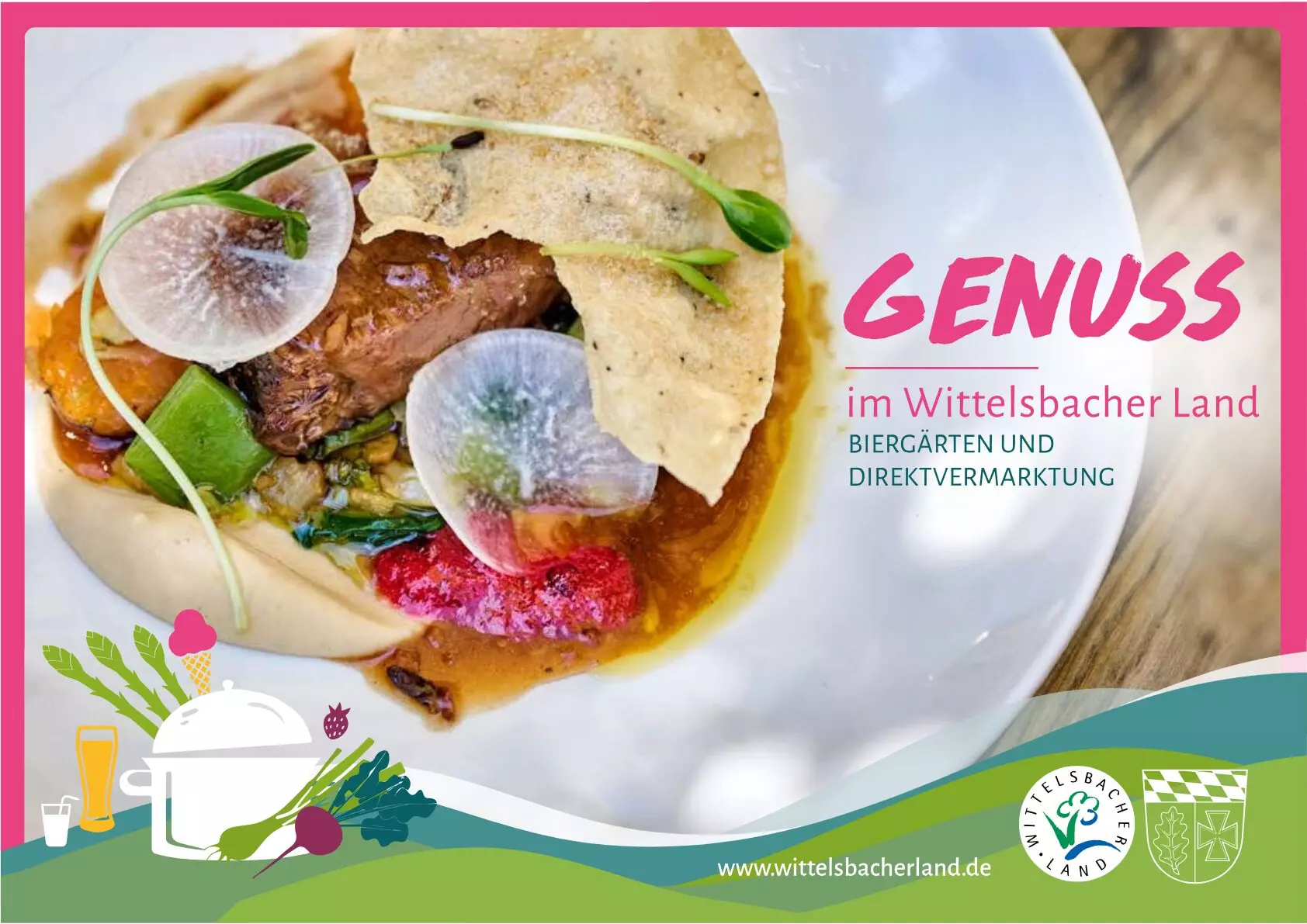 Der Landkreis Aichach-Friedberg überarbeitet aktuell die Genussbroschüre für das Wittelsbacher Land. Bier- und Wirtsgärten sowie Direktvermarktungsbetriebe – sowohl mit als auch ohne Selbstbedienungsautomaten – sind eingeladen, sich in der Broschüre zu präsentieren.