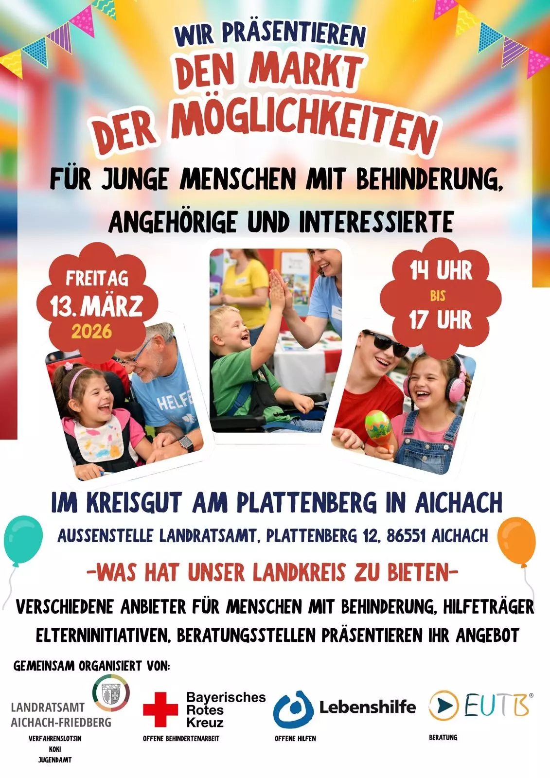 Junge Menschen mit Behinderung und ihre Familien sind herzlich zum „Markt der Möglichkeiten“ eingeladen. Dieser findet am 13. März 2026 ab 14.00 Uhr im Kreisgut Aichach statt.