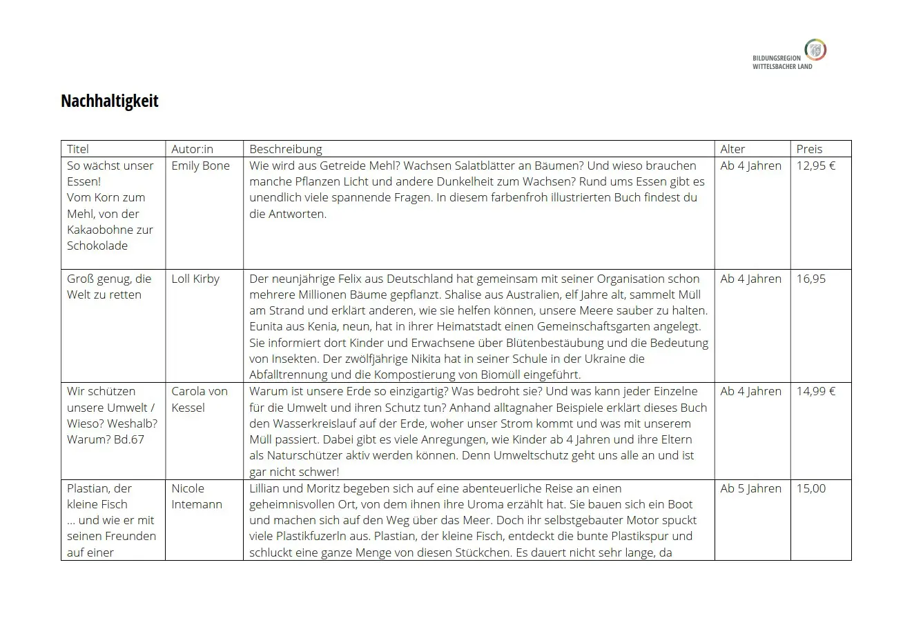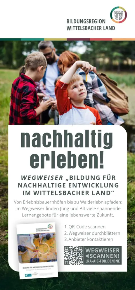 Der Wegweiser Bildung für nachhaltige Entwicklung im Wittelsbacher Land umfasst alle Lernangebote im Wittelsbacher Land und einen Ausschnitt angrenzender Angebote im A³-Verbund, die um das Thema BNE kreisen.