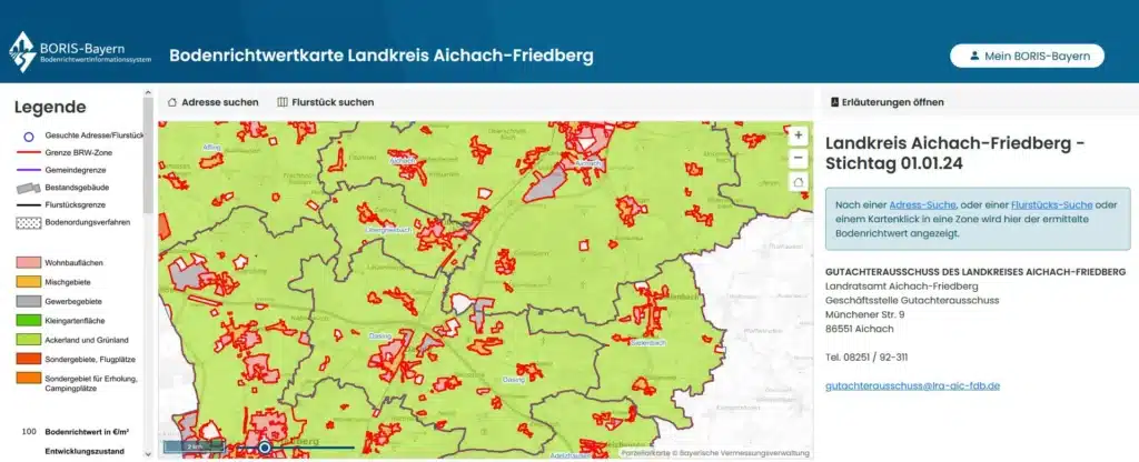 Bodenrichtwerte für Grundstücke im Bereich des Landkreises Aichach-Friedberg