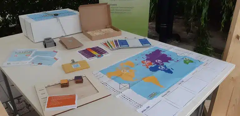 Escape Climate Change ist ein interaktives Spiel, welches das Thema “Klimaschutz” mit Spaß und Spannung ins Klassenzimmer bringt und auf der Idee des Escape Games basiert. Die Spieler müssen gemeinschaftlich einen finalen Geheimcode knacken, der sich innerhalb einer Box befindet. Dies gelingt nur, wenn sie zahlreiche Rätsel und Aufgaben mit Hilfe von Spürsinn, Teamwork und Klimawissen lösen. Kooperation und die Auseinandersetzung mit dem Thema “Klimaschutz” sind gefragt. Als Zeitspanne ist eine Doppelstunde vorgesehen. Vor der Durchführung des Spiels wird eine Vorbereitung (ca. 30 – 45 Min.) durch den Lehrer bzw. die Lehrerin empfohlen. Alle notwendigen Materialien (Spielanleitung, Hilfestellungen, Begleitmaterialien und Game-Guide, etc.) liegen bei.